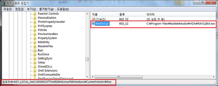 레지스트리 편집기에서 들어가서 위에 경로에 들어가서